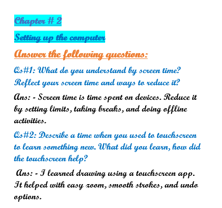 Explanation and working of Answers/Qs of chapter # 2 in copy.